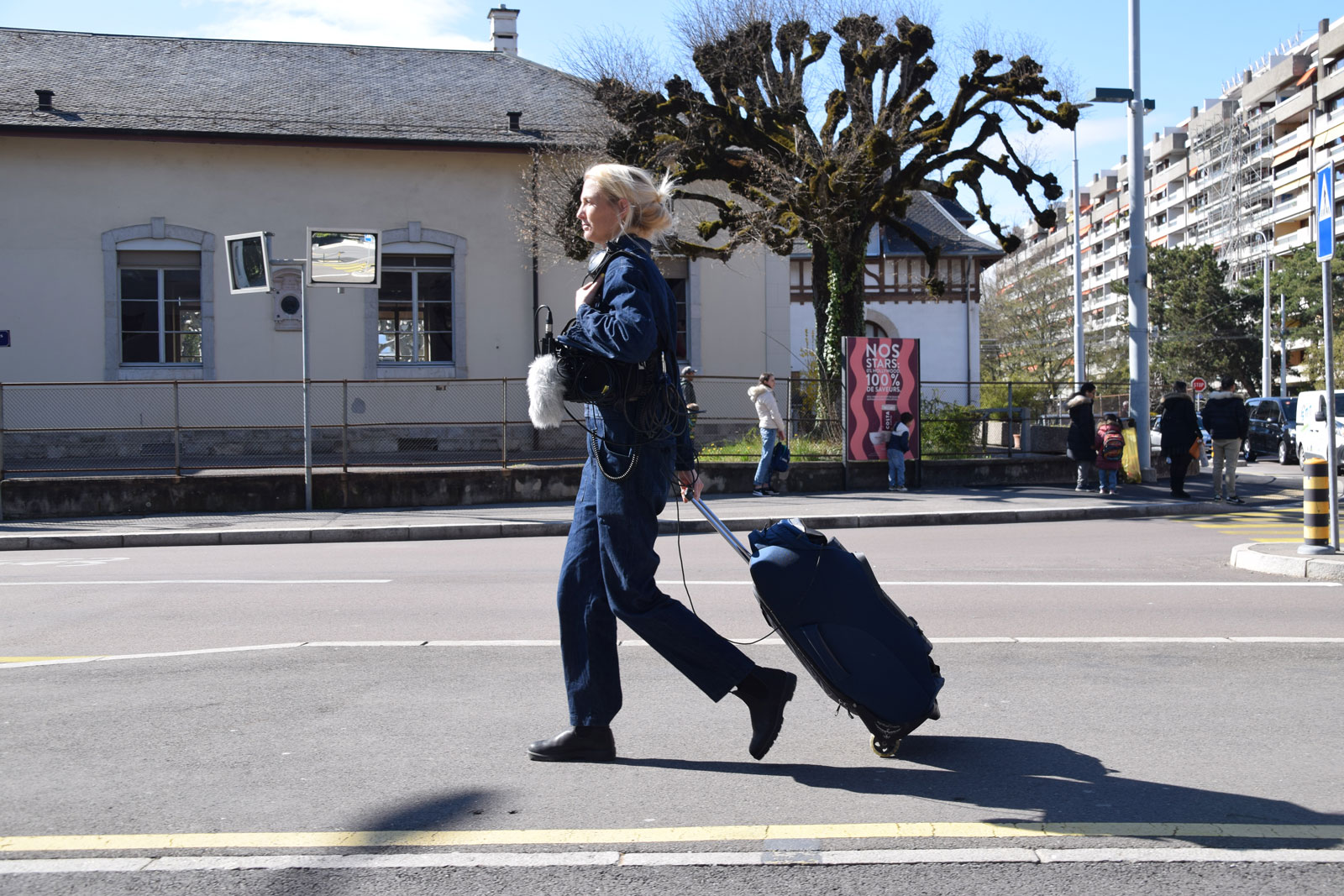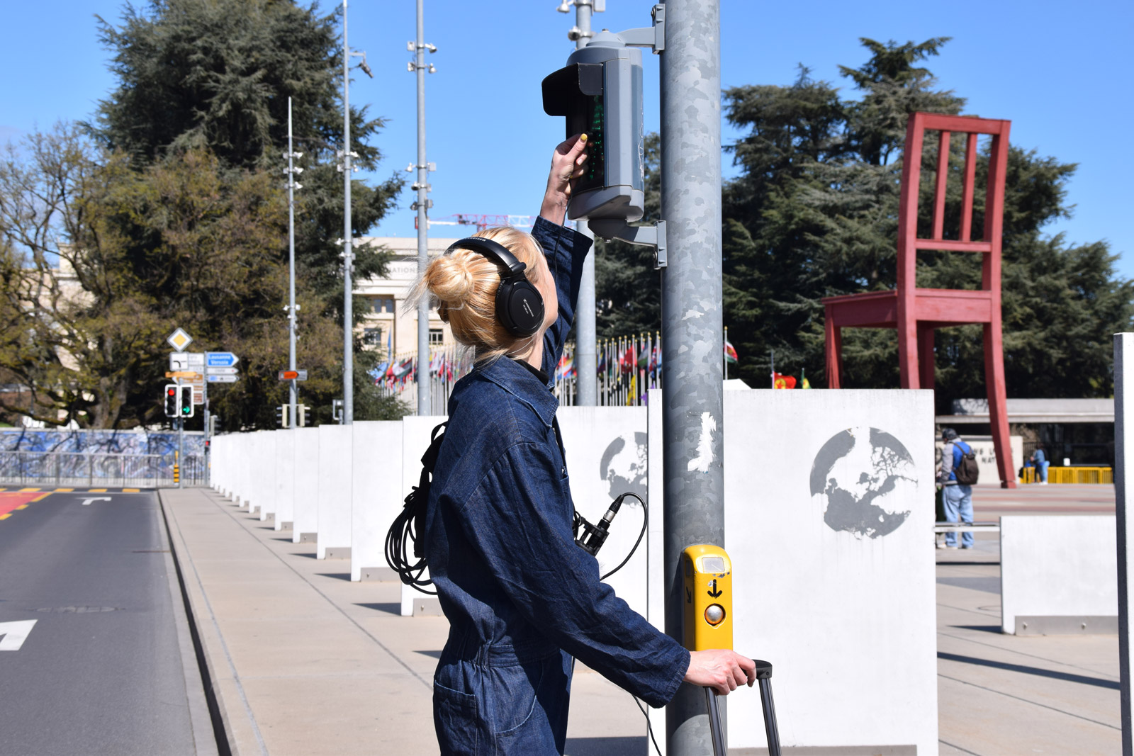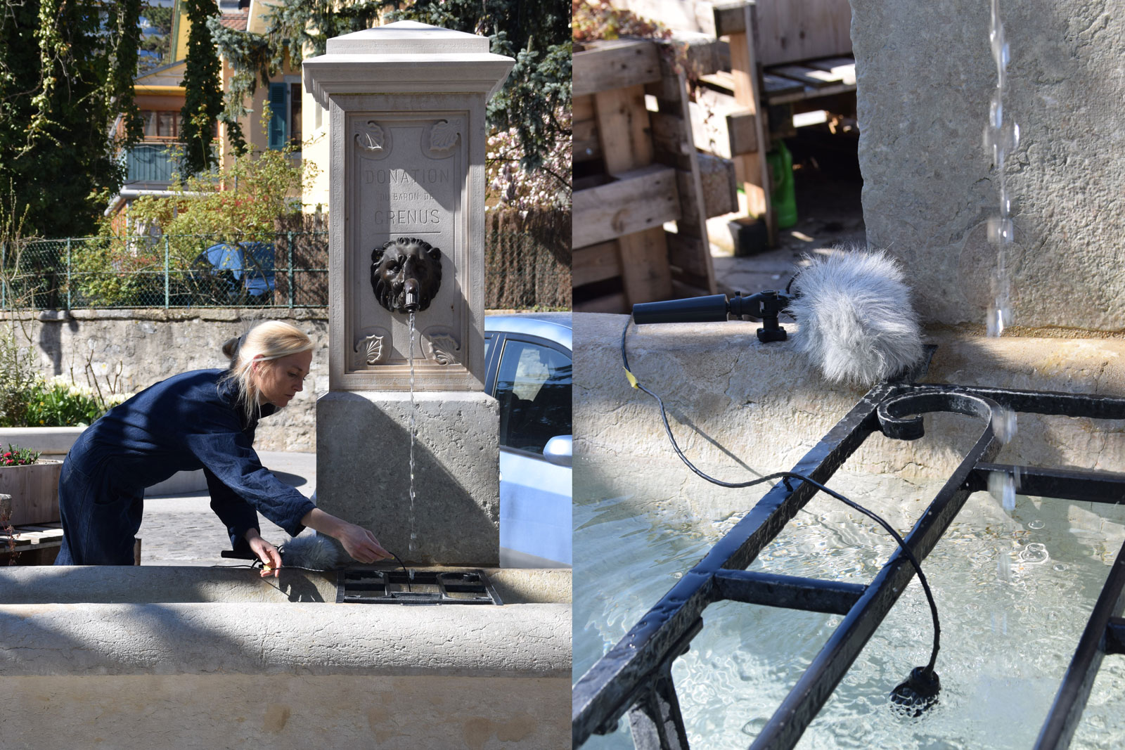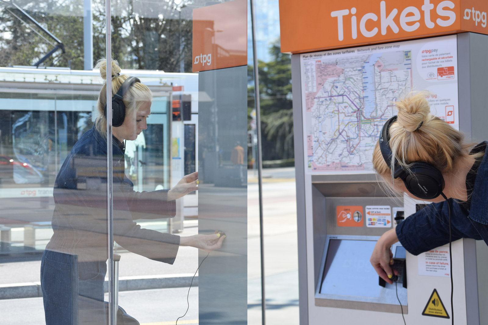 For the Tram des Nations artist residency, Nadine Schütz designed a unique mobile sound recording and broadcasting device to reveal and activate human, sensory landscapes through an experimental process of sharing and interaction. Via microphones that allow the recording of sounds that had never been heard before (textures of thresholds, the inner life of the waters that cross the city, magnetic fields of the infrastructures of urban mobility), and via a mobile loudspeaker worn on the back allowing passers-by to hear these mysterious sounds in real time, the work engages in conversations with the users and inhabitants of the territory who testify to the plurality of the landscape and the people who live there.