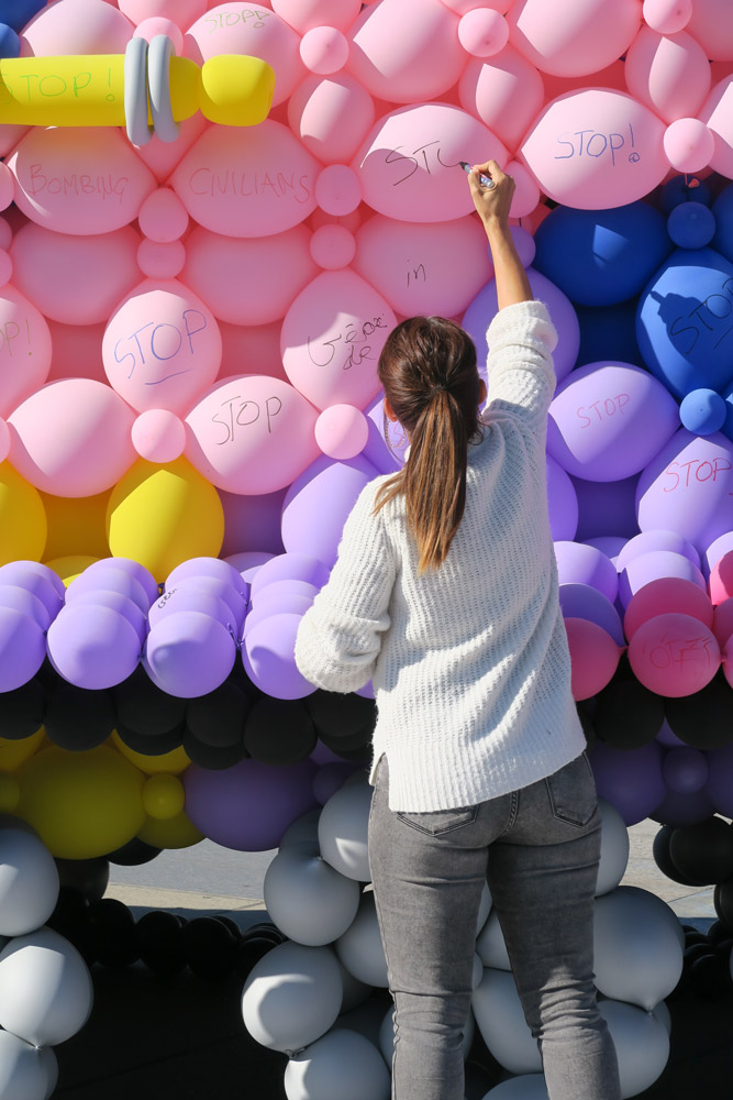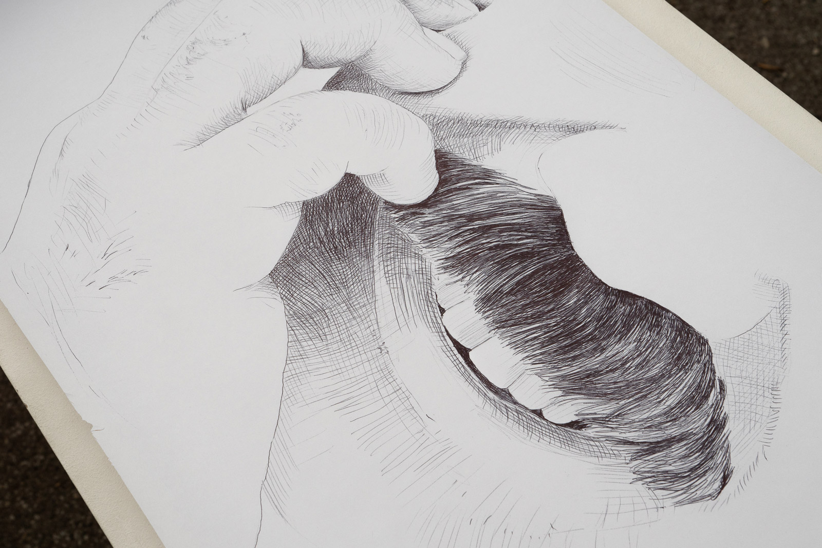 « Manifestons ! Manifestons ! » On pourrait croire la place très énervée mais le seul écho des clameurs et des bannières n’est dû qu’aux dalles poreuses de sa surface parfois arrosées par les mouvements de la fontaine qui la rythment. Quoi de mieux dans la chaleur d’été rafraîchie par les jets d’eau que de proposer un BAR pour récolter tout cela ? Nulle boisson, pas de consommation – le règlement de la place l’interdit –, mais un Bureau des Archives des Revendications (BAR) pour enregistrer et collecter la mémoire de ces rassemblements humains trop vite disparus de l’esprit des gens. A l’aide d’un stylo Bic, les photos, slogans et autres revendications sont patiemment et lentement décalqués et recopiés par les deux artistes sur un long rouleau de papier pendant trois jours d’échanges et d’enregistrements des mobilisations nous transportant en Syrie, au Kurdistan, en Turquie, au Sri Lanka et questionnant notre rapport aux autres, aux conflits et aux enjeux mondiaux.