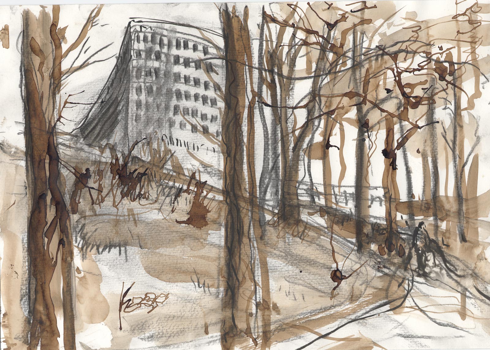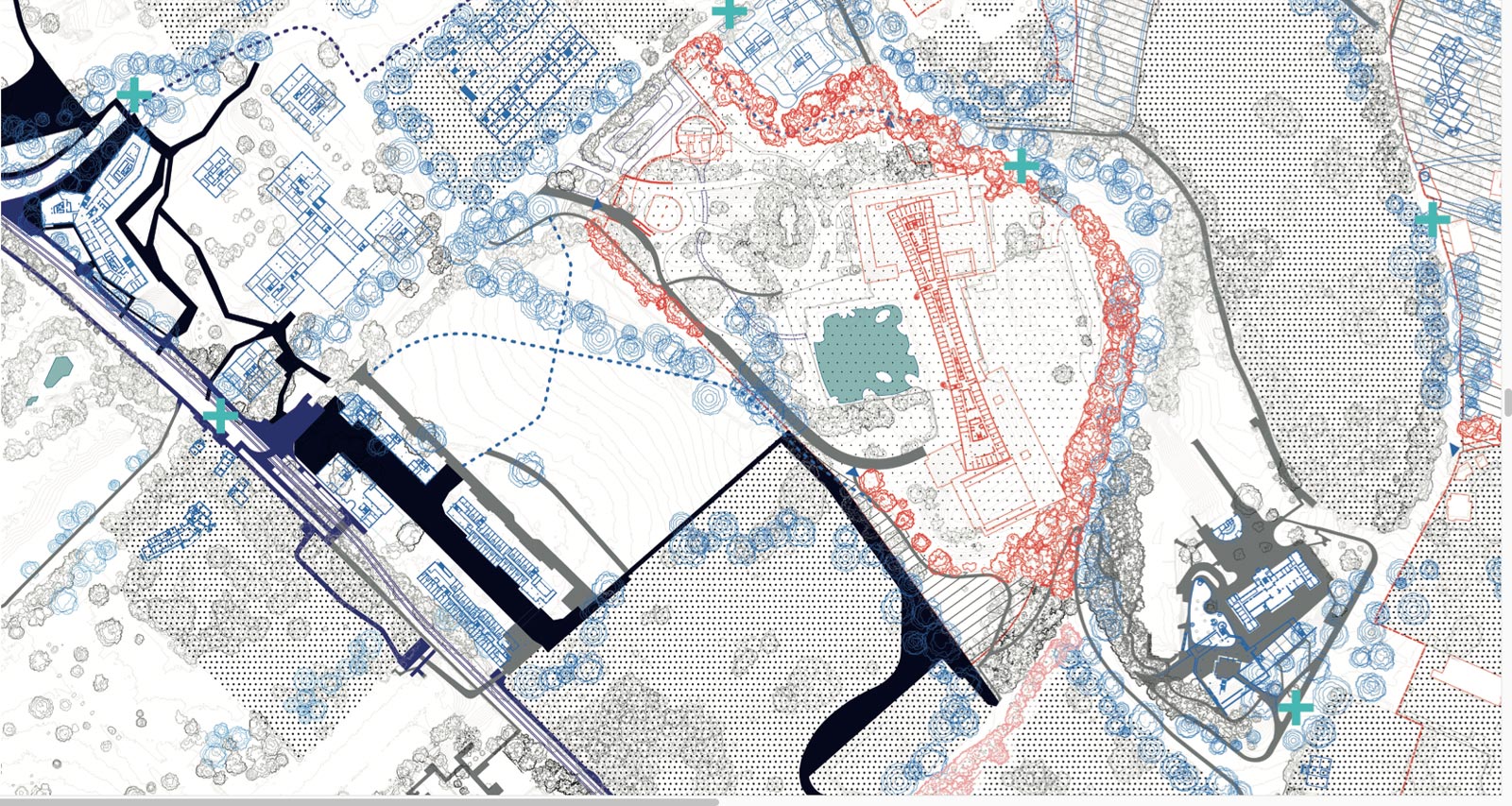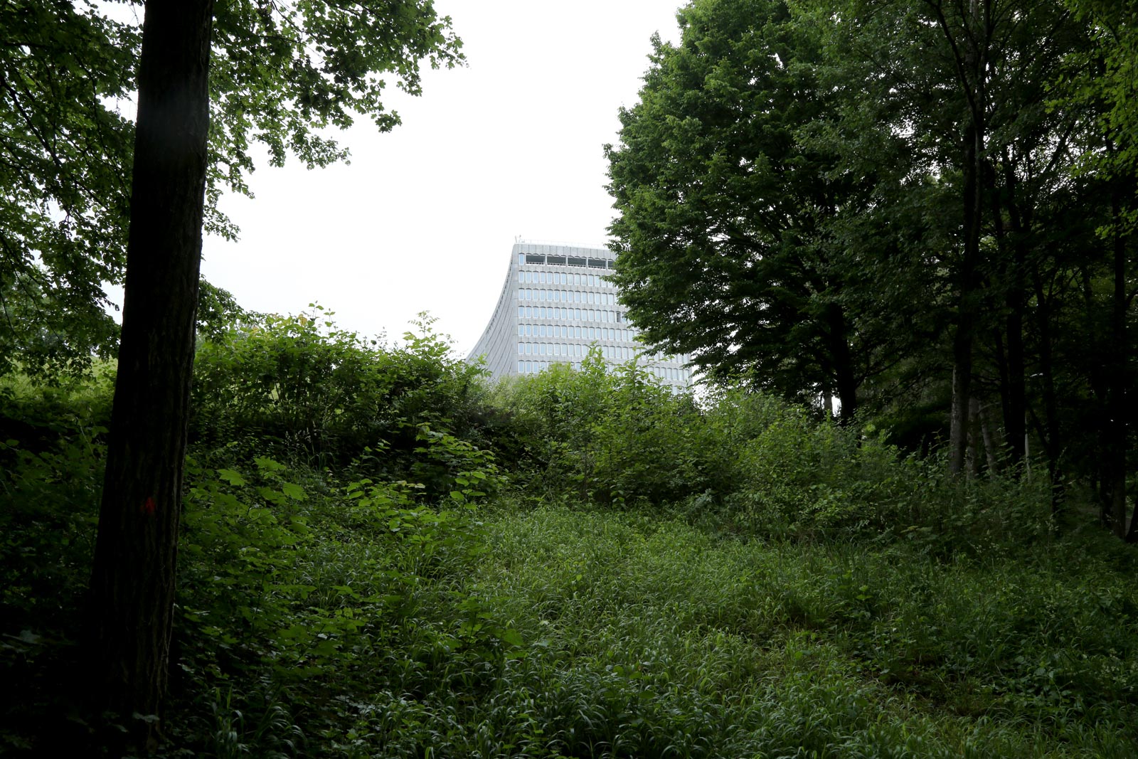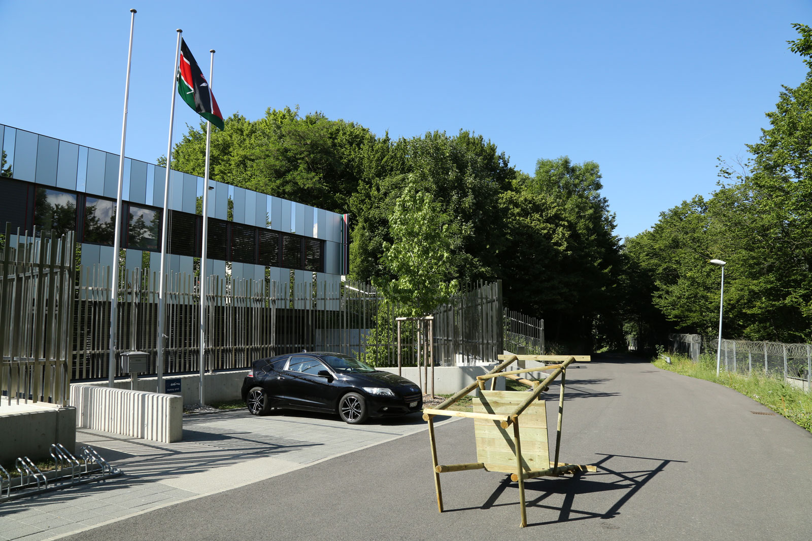 Aux abords du site du Grand-Morillon, un mirador d’affut a été installé non loin de la future ligne du tram des Nations, dans un parc face à l’Organisation Internationale du Travail (OIT). L’installation vise à interroger la notion de dispositif – en référence à Giorgio Agamben – et s’inspire de Sylvain Tesson et ses chemins noirs, de Baptiste Morizot et sa piste animale. L’observatoire cherche également à jouer avec les notions d’espaces publics et privés, en particulier dans ce contexte international aux dispositifs de sécurité particuliers, dont les normes onusiennes H-MOSS (Normes minimales de sécurité opérationnelle) qui empêcheront à terme l’accès du parc aux citoyen.ne.s genevoi.se.s. Possibilité de réensauvagement d’une partie d’un territoire hyper-urbain vers l’hyper-rural, enjeux environnementaux versus enjeux sociaux, le mirador est-il un observatoire de la faune et de la flore ou bien au contraire un objet de défiance face aux dispositifs ? Qui regarde qui ?