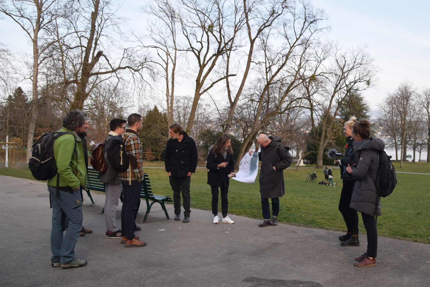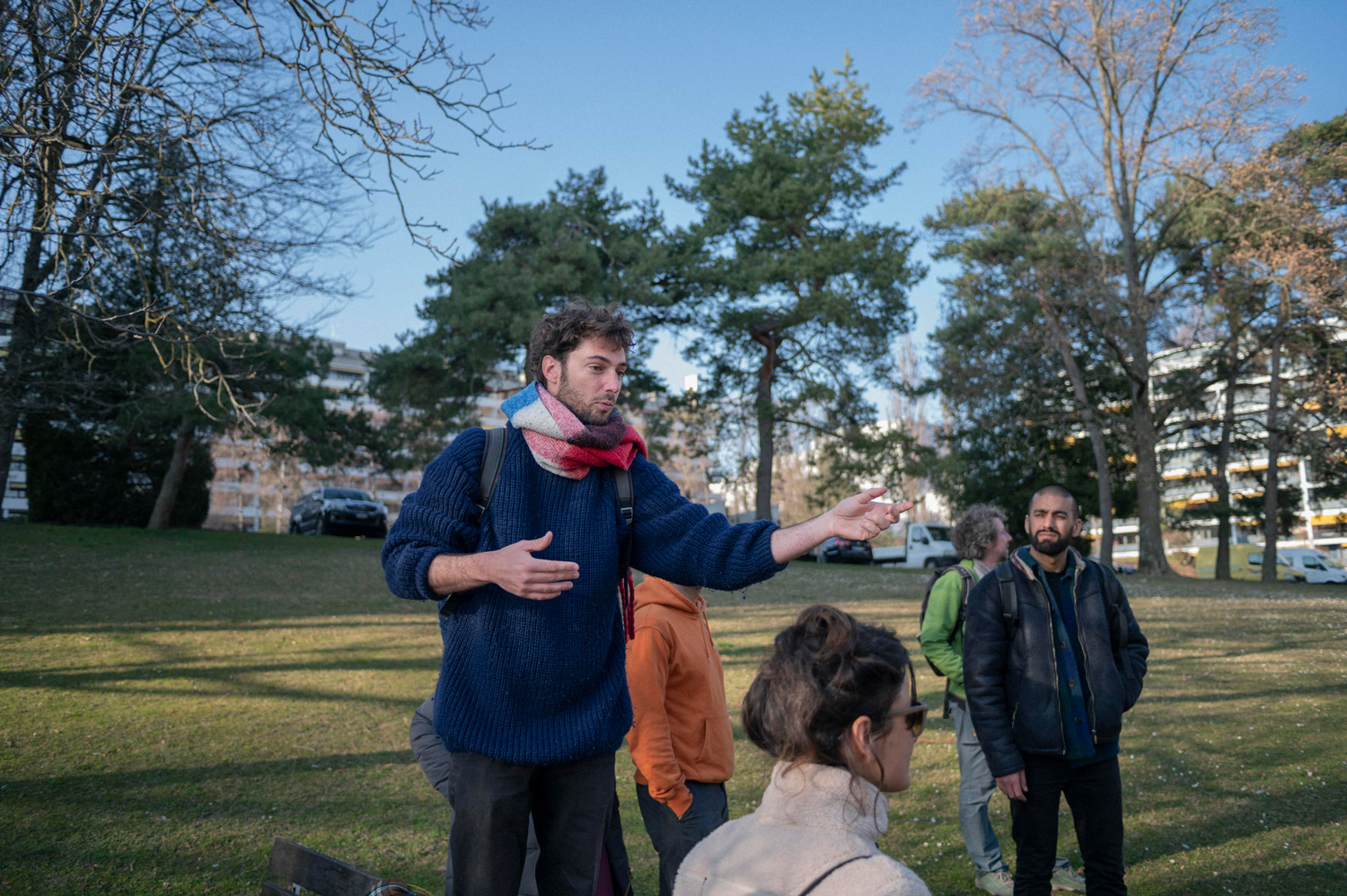 La première semaine (mars) comprenait une série de promenades par des chercheurs locaux et des artistes explorant les dimensions sonores, nocturnes, chorégraphiques et écologiques de ce nouveau parcours infrastructurel. Les balades et ateliers étaient animés par Lionel Chabot (Département du territoire), Amin Khosravi (urbz), Maria Da Silva et Nicolas Dutour (Dénominateurs Communs), Léonore Nemec et Dieter Dietz (Architecture Land Initiative), Sven Anderson (Sound-Frameworks et Theatrum Mundi), Trond Maag (urbanidentity), et Vera Sacchetti (Scènes de Nuit et HEAD Genève).