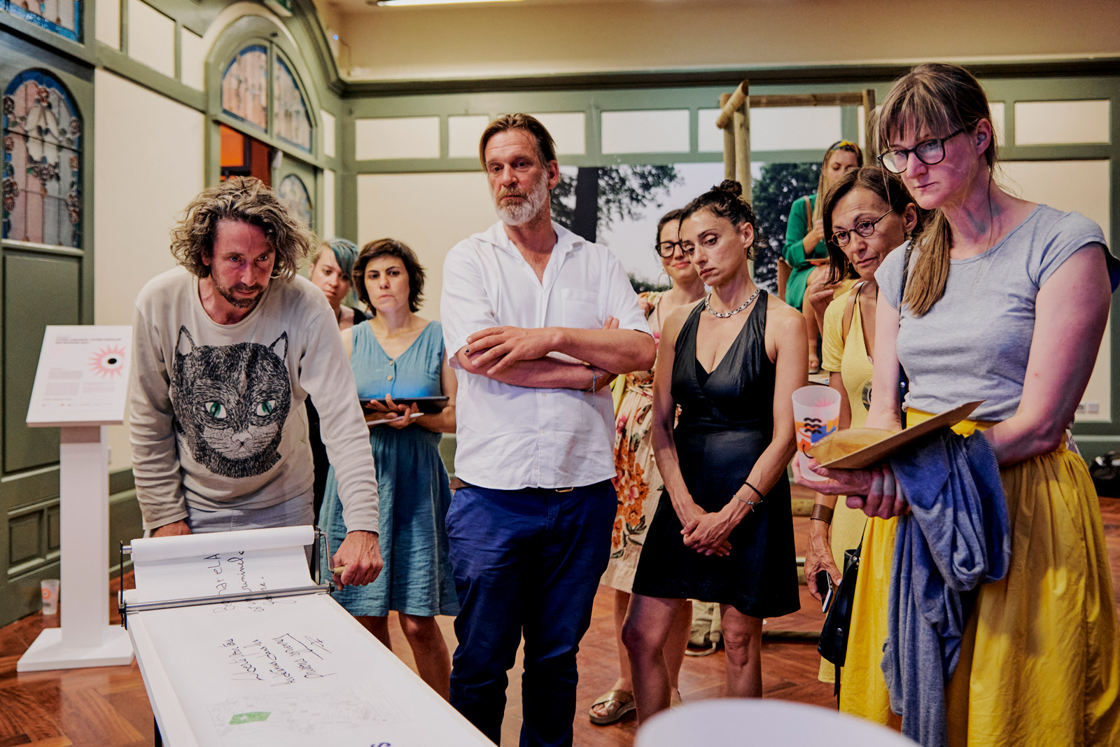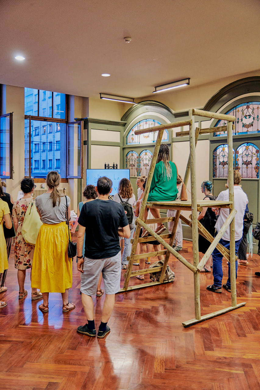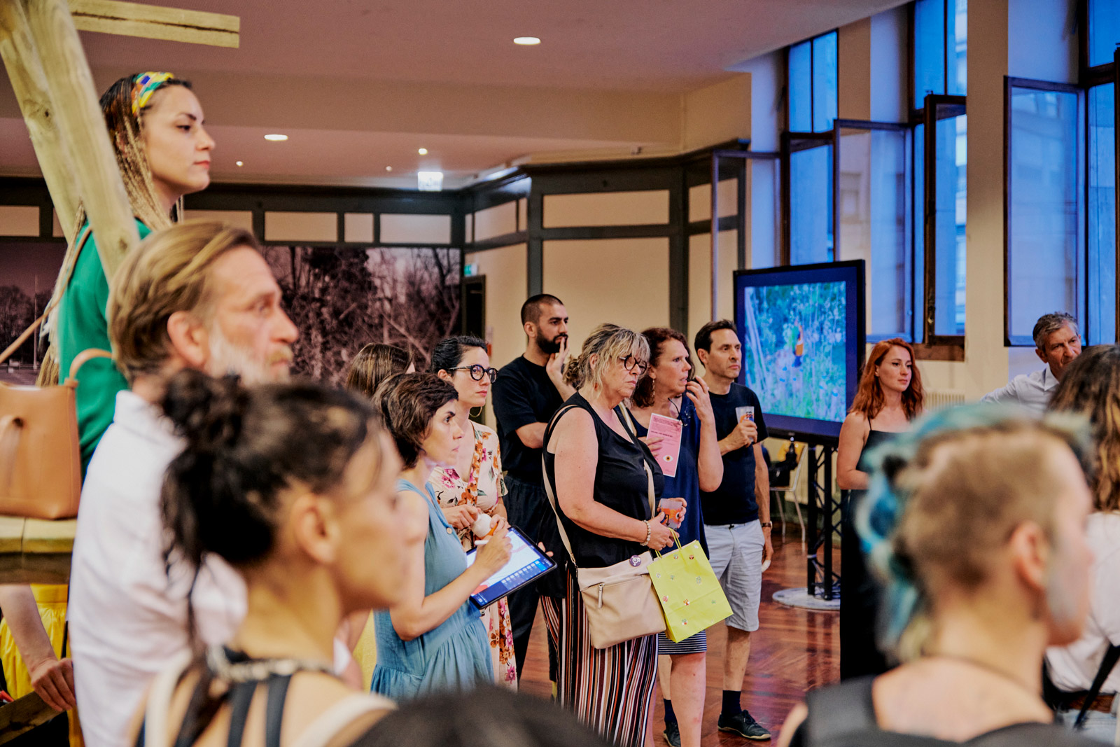 Dans le cadre du Festival EXPLORE, la résidence Tram des Nations a invité les gens à vivre une expérience en immersion avec six artistes locaux et internationaux. Voler avec des corbeaux, parler avec des pierres, utiliser une « machine humaine d’enregistrement », traverser le temps et les protestations politiques, déambuler dans des transports publics, manger des crêpes sérigraphiées !